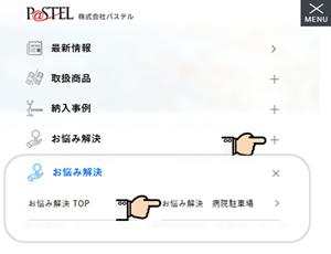 ホームページの上部にあるグランドメニューの「お悩み解決」から該当のページにリンクできます。