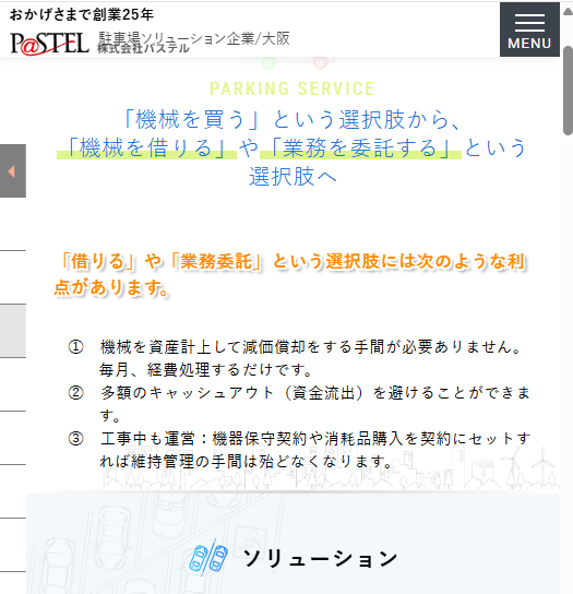 「お悩み解決」カテゴリーに「病院駐車場」を追加しました。こちらの病院駐車場のページに採用されている左側面のガイドメニューについて、ご好評につき「 取扱商品 」カテゴリーの各ページにも採用いたしました。(「 パーキングシステム 」カテゴリー内の記事以外)