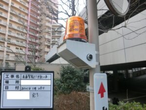注意喚起灯・車感知センサー・制御盤全てを更新しました。 夜はブザーが鳴らないようにタイマーを設定しています。
